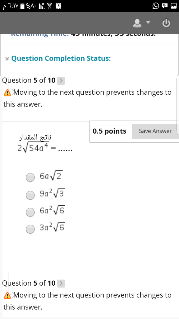 سؤال 5/ (6a2جذر 6)