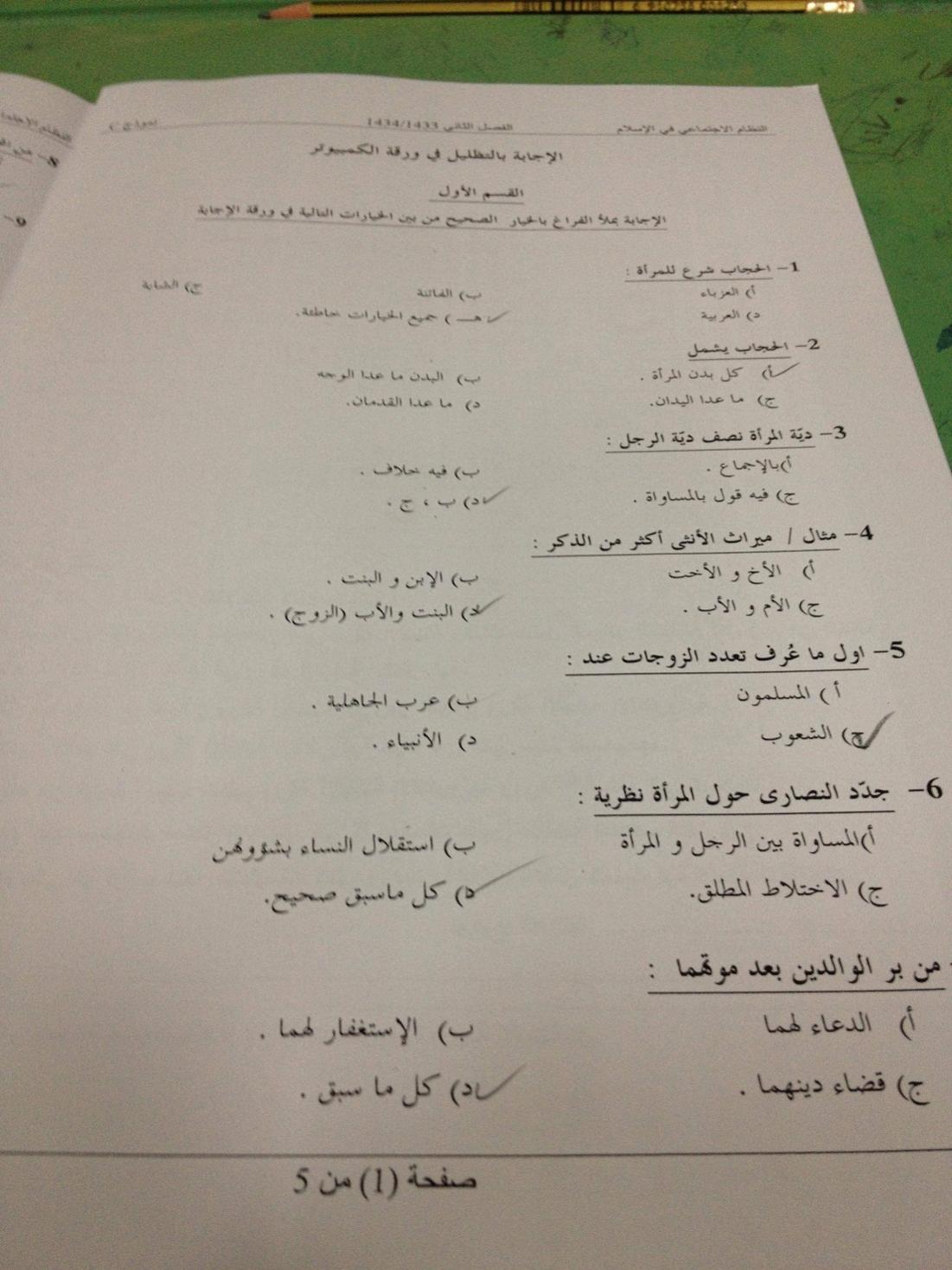 - أسئلة موضوعية - ٥٠ سؤال - دراسة المذكرة الموجودة في البلاك بورد فقط - اختبار من ٧٠ درجة - لا يوجد حفظ الأحزاب او الحجرات - لا يوجد بحث - هناك اختلاف بين المحاضارات و المذكرة - ذاكروا من المذكرة بدون المحاضرات - إذا موجودة بالمذكرة فأنتم مطالبون بها - الفرقة سبب اختلاف الدين -> ترجع فيها الكتاب اسمه : تاريخ التشريع الاسلامي لشيخ : مناع القطان - ملزمة موجودة بالبلاك بورد من ٧٦ صفحة و في المنتديات - ما أحاول أجيب ذكر آية او حديث لأن الأسئلة الموضوعية لا تتسع - مذكرة مأخوذة من كتاب ( أبو غدة ) - الاسلام و بناء المجتمع - فهم الأدلة و لا نطالب بحفظها - تتكلم عن الأسرة و سمات المجتمع الإسلامي - مكانة المرأة في الإسلام - رد الشبهات - اختبار سهل جداً و موضوعي - الأسئلة مباشرة وواضحة و المنهج واضح - لاشيء محذوف - ليس هناك حفظ أسماء - الامتحان من المذكرة ليست من الباوربوين و لا من المحاضرات - الأيات و الأحاديث مافي - مذكرة تكفي - الأسئلة واضحة وسهلة |