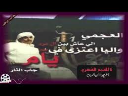 يا معدي فوق رجمن من رجوم الأرض دامي انت وأنا بعد ما عديت الاعمى والمقدي : جر صوتك والهوى نجدي ترى ماهو بشامي جرتن يدوي صداها في ضلوعي يالمعدي : دام مالي حيله أعدي معك وأبرد هيامي لك علي احذف لك شماغي واصفق لك بيدي : بابعير الحمل أبو نابين مردوم السنامي غاربك لا ثقلت الحمله عن جنوبك يعدي : خل رأسك للسماء ولا يوطيه الخزامي لو ترى مالك من القصاب عذر ولا مصدي : جعل ربي مايحاسبني على عظة بهامي والصبر من فوق طاقة ماتحمله امتعدي : لا رفيق إلا الظفر ولا حزام إلا حزامي بعد ما جربت جمع الذل والسيف المصدي : والمفدي عن بني عمه بروحه ما يلامي لا بغى عن روحه بروحه يعدي لا يفدي : يا زماني لا بغت تخفي لياليك عظامي ثم يجئ من بعد جيلي عصر جيلن مستجدي : طالبك حق الكريم اللي ماتجحده الكرامي ساعتن شح السحاب بماه وكفوفه تندي : لا نشدك اللي ما يعرف فيمتي ولا مقامي منهو ابن الذيب علمهم بلا ظلم وتعدي : قلهم مدري لكن محمد ابن الذيب يامي من غروره كل يوم يقول لي منته بقدي : وان دعيته لتحدي قال بالصوت التهامي أحفرو قبري ياربعي ويش أنا لولا التحدي : يالجفون اللي سرق طيفك من عيوني منامي ليته يهدي على قلبي وليته مايهدي : كيف تبلغ ناعسات الطرف مركوبة سلامي وإنتي معيه تلدين النظر لا قلت لدي : لا تخفين الدموع الغاليه تحت اللثامي ودي أشوف الدموع أودي أشوفك أودي : أن قلبك ما يعاتبني ولا يكثر ملامي دام يجهل ما أكن ولين يعرف ما ابدي : أستبدي دام قلبي من لهيب الشوق ظامي ما عطاك إلا الله اللي يعطي الناس أستبدي الله يـخــآرجك ويفـك آســرك ي رب " |