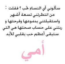 أحلى خبر وصلني اليوم أنه الأسبوع القادم سوف تشرف الوالده والعمه الغاليه أم خالد إلى الدمام يامرحبا بمن لفانا وهذه الآبيات مقدمه للوالده ربي يحفظها لـ قلبي ولساني | دعـاء مايمّلون منه ليت ليت ليت .. يستجيبه منهم ربي.. ياربّ : أمي تكون من سيدات الجنه وأبوي مع زمــــرة أصـحاب النبي.. : أمي وتظهر من يديني عروقي واردها وتصير نبضي ودمي أول وأكبر ماعلىّ من حقوقي أمي وثم امي و أمي وأمي : خشُوعها بالصلاة بخوف وبخلوة ، دمُوعها صُوتها … ريحة عبايتها ! يَ رب … لاتردّها لا جاتك بدعوة ، اغفر خطاها .. ووصّلها لـ غايتها ! : يارب زِدني برّها قبل لا أموت. اللي تشيل من الصغر كل همي. حتى الرسول اللي له العلم مثبوت ثلاث مراتٍٍ يوصي على أمي : *أمي وليفة خاطري نور عيني حتى وهي قربي لها احنّ واشتاق كل ماأضيق بهالزمن تحتويني يااربّ تشرح صدرها كل ماضااق : انتي وطن ، يستحق اللي يضحي لك انتي فديتك ، ( تحت رجلينك الجنه ) لو اقضي العمر يا ( يمه ) البي لك �� ماجيت خيرك ولا ربعه ولا منه : من يشبهك! آنتي آظنك تشبهين الطُهر وأحساس الكريم فـ مدته ! يمه وأنا مدري وش اقول بكلمتين هاتي قدمك آبـي رضا الله وجنته : يَ جعل نغزات الوجع في عظامي يَ احن مخلوقه و يَ اطهرهم ! عطيني الامك يَ يمه و نامي ! واوعدك بـ/ اضحك للوجع و اقهرهم : يمه وأنا أدري كل ماقلت يمه تصغين في كل الأحاسيس يمي في ذمتي لوتطلبي العمر ذمه لقول لك ياقرة العين سمي : يا يمه يا اغلى من حياتي و ذاتي لو راح عمري في رجاكي قليله أقطف يا يمه من صفاتك صفاتي كل طيب فيكي ودي اقطف مثيله : يمه ولو نصفي من العمر قد ضاع على كثر مافات ماينفع الصوت لو العمر يمه يديّن وينباع ..! لا ابيع لك عمري وانا اسدد الموت : حبها مذخور لعيالي ؛ وراثه لو بغت قلبي وروحي قلت سمي ما عشقت مّن النساء ألا ثلاثه أعشق (( أمي ثُمَّ أمي ثُمَّ أمي )) |