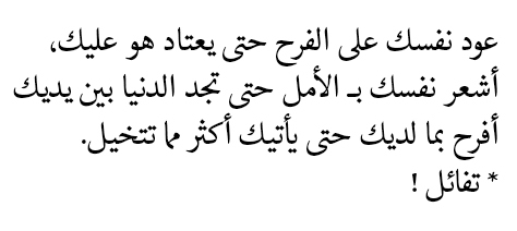 http://2.bp.blogspot.com/-64hXJHzATO...uzy8o1_500.jpg إستمري يا نَفسي في ذلك العالم الجميــل [/ALIGN][/CELL][/TABLE1][/ALIGN]بعيداً هُناك تحت ضياء النور بعيداً عن العُتمــة تحت خيوط الشمس و ضوء القَمـــر قد زرعت في ذاتك حُب الأمل و الطُموح إمضــي لذلك السِراج بِهمــة عَاليــة و آمل أن لا تخذليني يوماً ما فَلم نَبقى سِوى أنتِ و أنا بَعد اليَوم |
