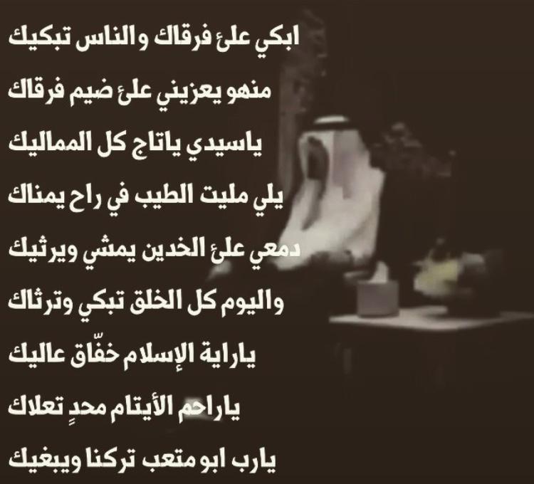 الله يرحم مليك العرْب عبدالله ويسكنه جنات عدن وينشرح باله يارب جاوز عن الزلات واغفرله واحسن بفضلك على عبدك بمنزاله |