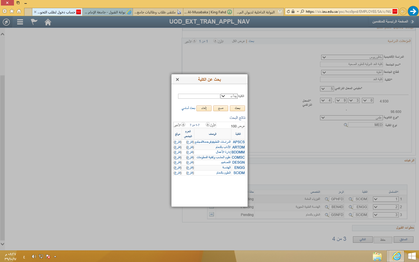 والصورة ادناه تحتوي على الكلية المتوفرة دون ظهور كلية الطب من ضمن الخيارات ارجوا الإفادة عند مواعيد التحويل الخارجي لكلية الطب ولكم اطيب التحية وخالص التقدير ،،،، ملف مرفق 334235 |