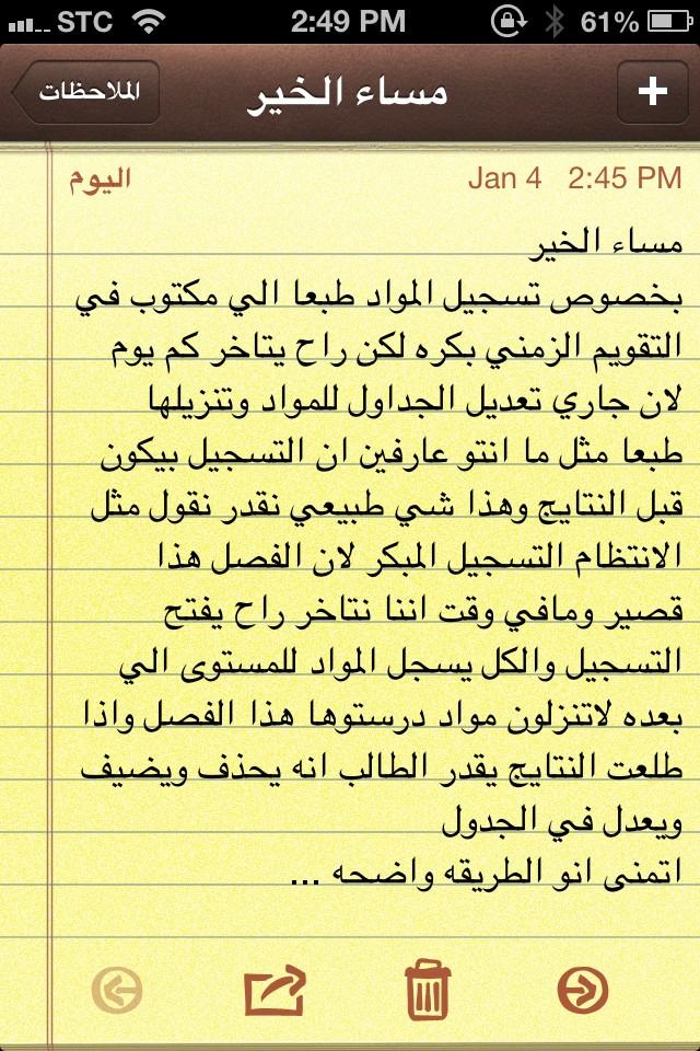 رد: بما يتعلق عن موعد تسجيل المواد للفصل الثاني