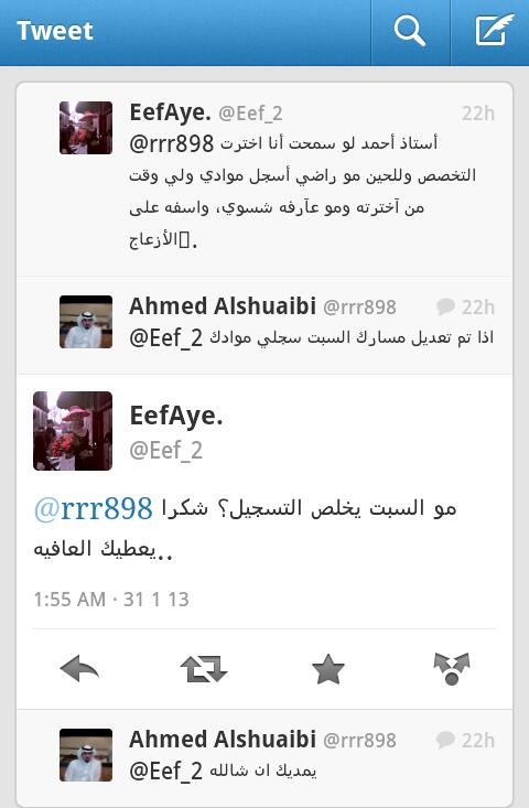 بخصوص هالموضوع ولقيت هذي الفتاه تسأله من الصبح وأنا أفكر فيكم وودي أفيدكم بشي من المحادثه هذي أتوقع رح يمددون فترة التسجيل بإذن الله بتتسهل |