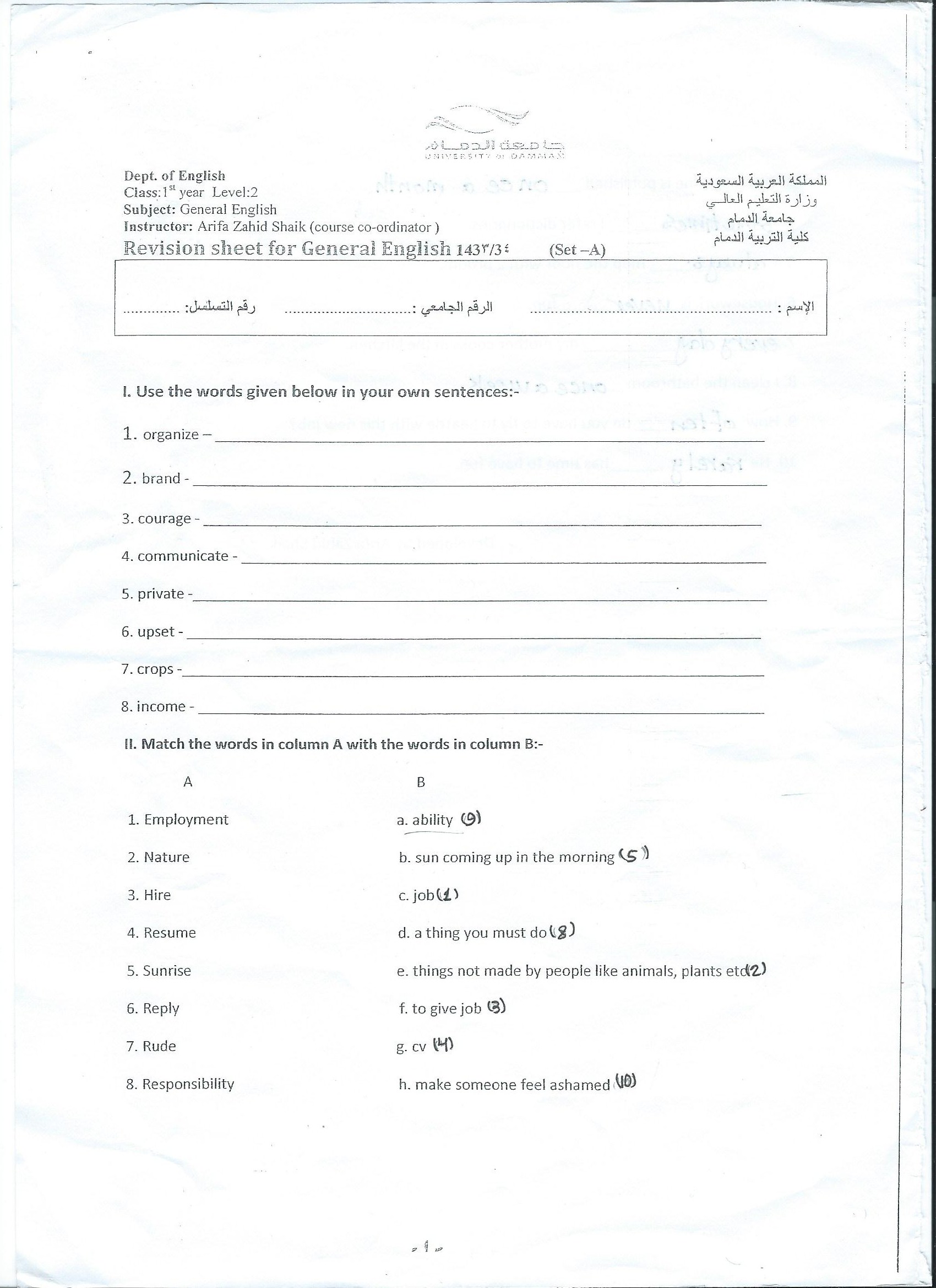رد: انجليزي عام ياسمين , عارفه , سميره