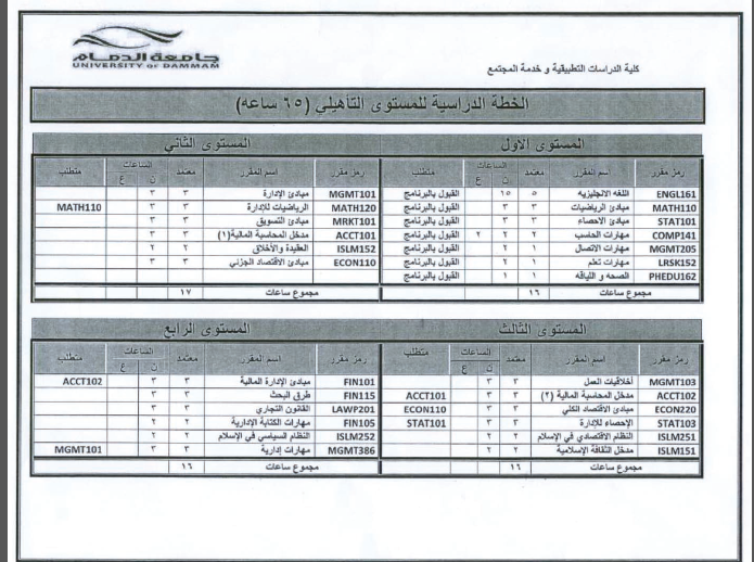 ممكن اعرف ايش المقررات اللي لازم نسجلها؟