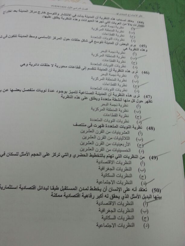 رد: اسئلة اختبار مع الحل علم الاجتماع الحضري