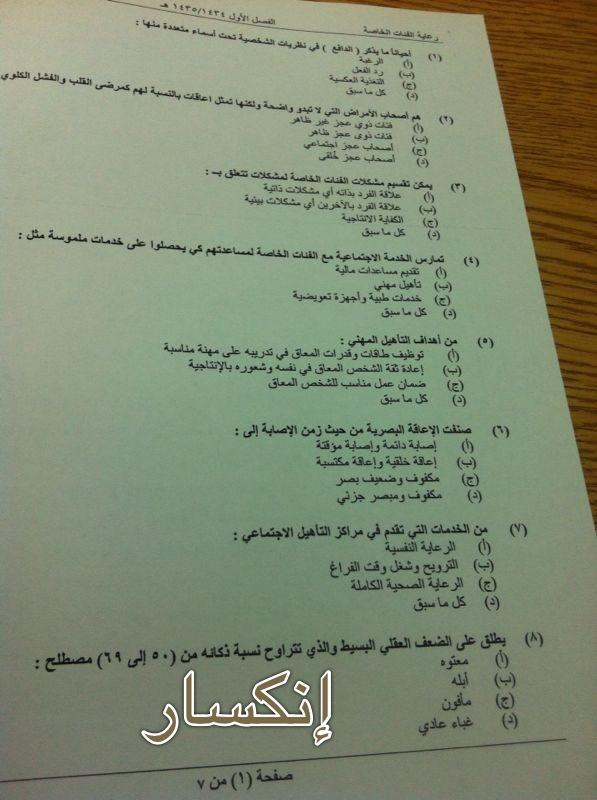 رد: أسئلة اختبار رعاية الفئات الخاصة ( مصـورهـ )