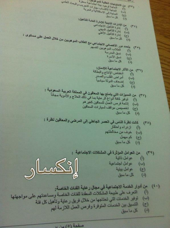 أسئلة اختبار رعاية الفئات الخاصة ( مصـورهـ )