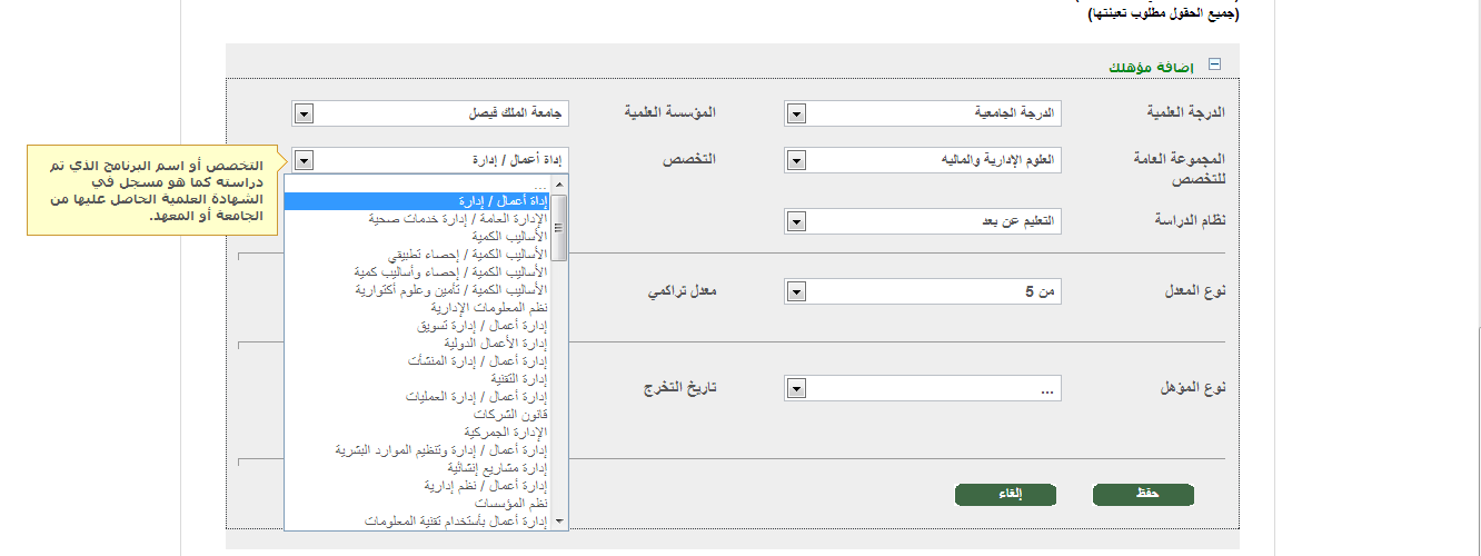 اذا بتسجل او تشترك في نظام الخدمة الوطنيه تحصل تخصص ادارة موجود كما هو بالمرفق..