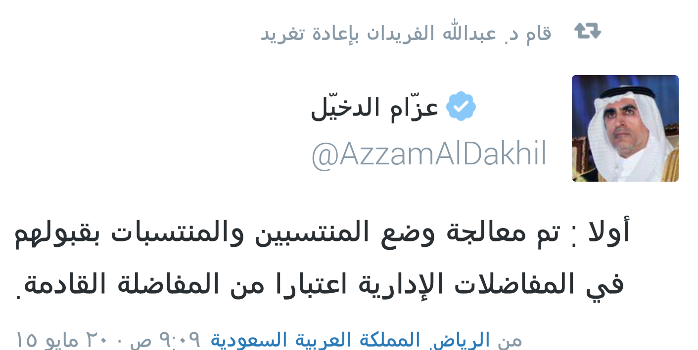 إعلن وزير التعليم قبل قليل على حسابه في تويتر