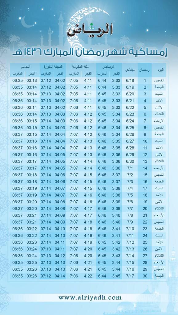 رد: إمساكية شهر رمضان المبارك عام 1436