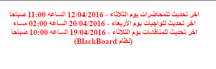 بليييز محتاجة مساعدة ضروري انا حملت محاضراتي كلها من الافتراضي لكن في مادة ماتحمّلت منه ف حملتها من البلاك بورد لكن تفاجئت اليوم بالخارطة انو كلها اكسات بالصورة مكتوب اخر تحديث للمحاضرات بتاريخ 12 - 4 انا تقريبا حملتها ب 14 -4 بعكس الافتراضي التحديث كله مرة وحدة تتوقعون تنحسب لي الدرجة ولا لأ ؟ وابغى ايميل الفريدان لو تكرمتم |