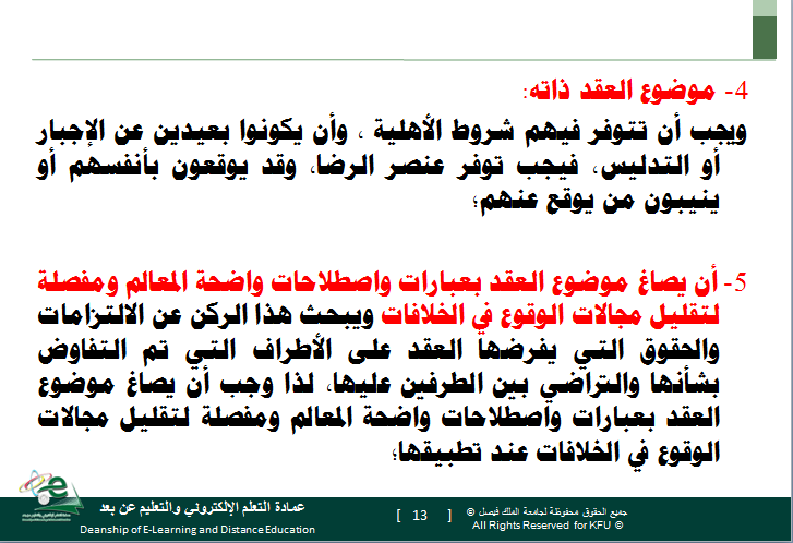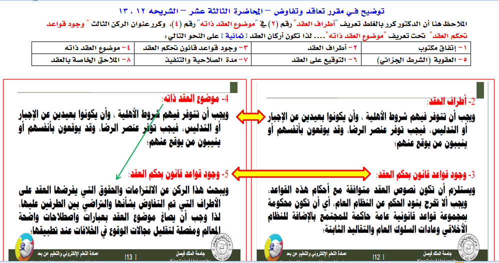 رد: توضيح فـي مقرر تعاقد وتفاوض – المحاضرة الثالثة عشر – الشريحه 12 ، 13