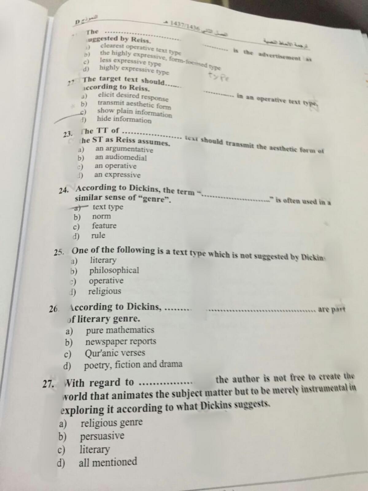 رد: مجلس مذاكرة مقرر#{ترجمة الأنماط النصية}الفصل الدراسي الأول 2016\1438هجري