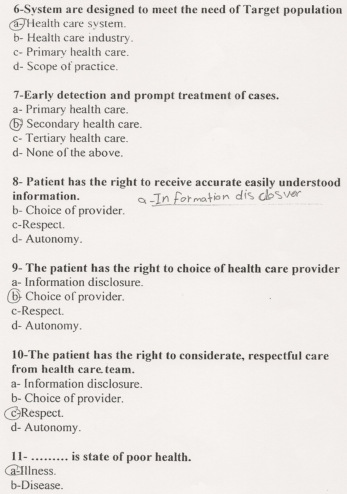 بس تاكدو ان الهلث كير مركزيه لاتعتمدون ع اسئلة الاستاذات بس ذاكرو الكتاب بعدين راجعو من الاسئله والملازم وموفقين ياااااااااااااااارب |