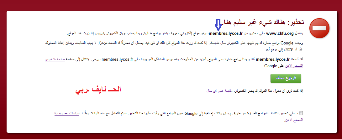 اها انتم تتصفحون بقوقل كروم عشان كذا طلع لكم التحذير