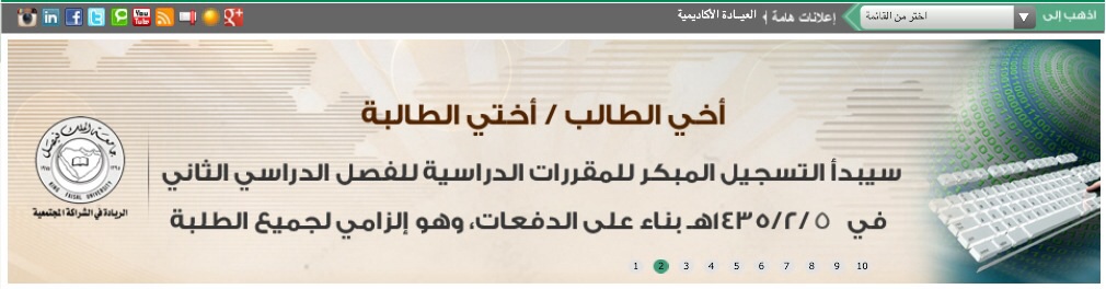 هذا في موقع الجامعه الرسمي يعني يخص طلاب الإنتظام احنا يهمنا أي شي في بوابة التعليم عن بعد و اكيد وقت تسجيل مقرراتنا تجي رسائل ع الجوال و تلاقي كل مواضيع المنتدى قلبت تسجيل مقررات |