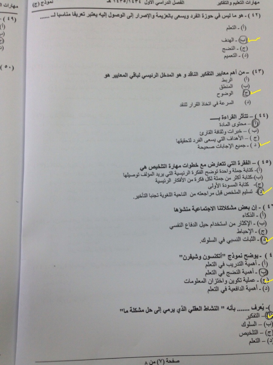 رد: نموذج a لاختبار مهارات التعلم والتفكير لهذا اليوم