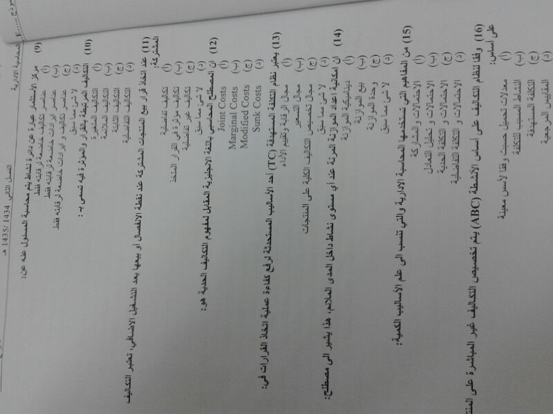 رد: اسألة اختبار المحاسبه الاداريه عام 1435 تحتاج الي حل