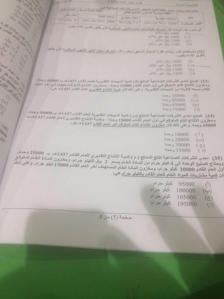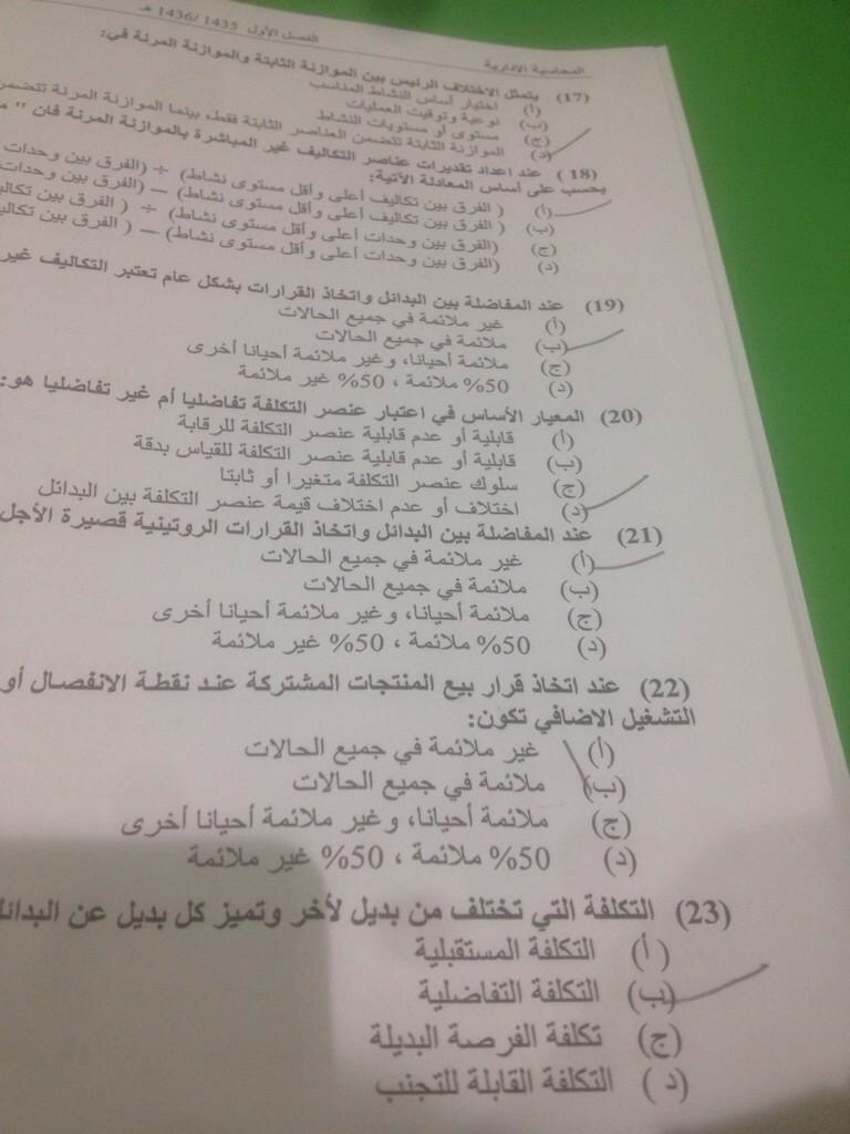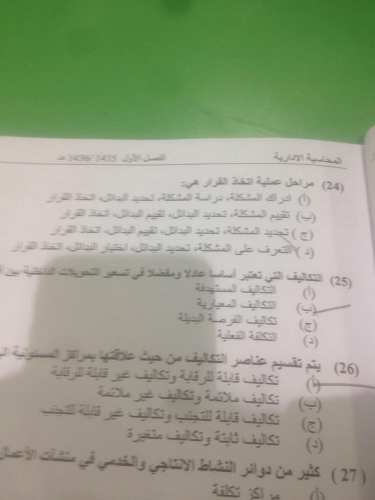 رد: مطــــلوب نموذج d أختبــار المحاسبة الادارية ياليت الي صــوره يدخل ( فيس حزين ) ..
