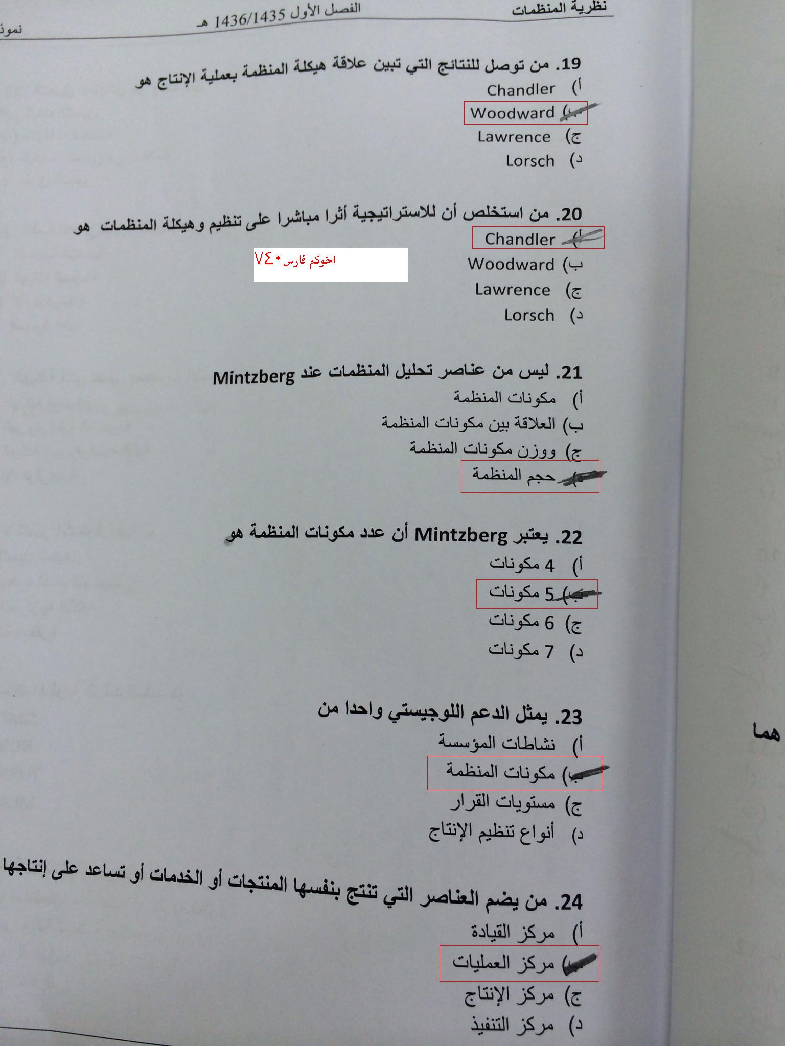 رد: الحل النهائي والصحيح باذن الله 100% لمادة نظرية المنظمات للفصل الاول لعام 1436/1437 نموذج a