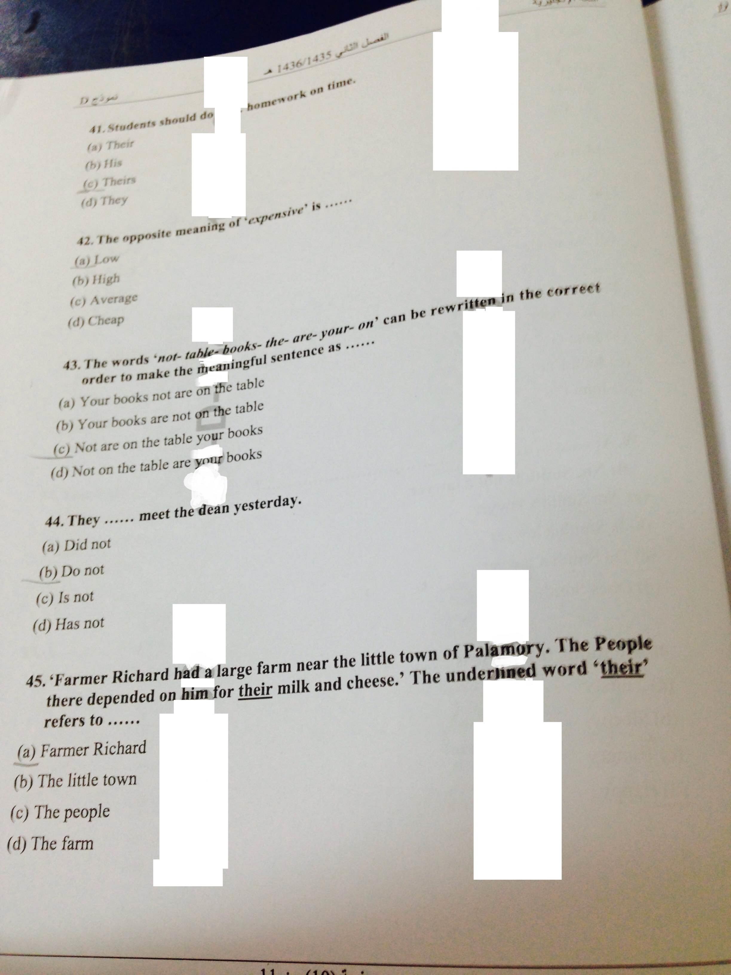 رد: صور أسئلة اختبار اللغه الانجليزيه نموذج d 1436
