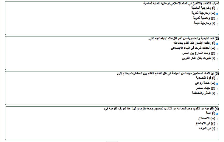 رد: واجبات: تاريخ التشريع - حاضر العالم الاسلامي - قضايا ثقافية معاصرة - الحضارة الاسلامية - نظرية المعرفة - تاريخ الخليج - دراسة الأسانيد - فقة الموريث (2) -وغ