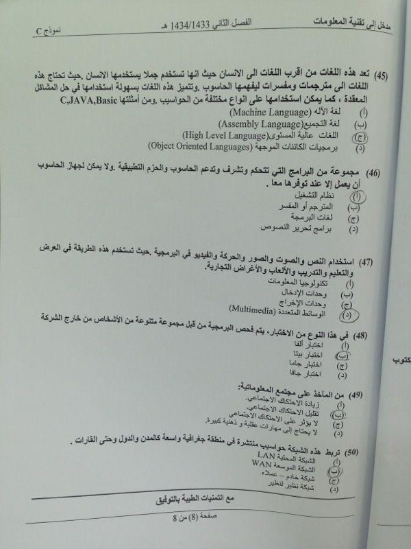 رد: اسئلة اختبار مدخل الى تقنية المعلومات لعام 1434-1435-1436-1437
